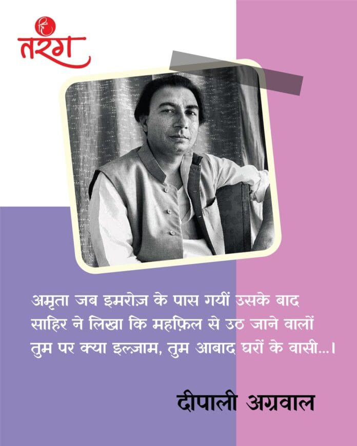 साहिर लुधियानवी उन गिने-चुने गीतकारों में से हैं जिनके गानों को सुनकर उनकी लव लाइफ़ के अंदाज़े लगाए जाते थे। उन्होंने ख़ुद किसी का नाम अपने से नहीं जोड़ा। उन दिनों जब सुधा मल्होत्रा और साहिर के चर्चे थे, तब साहिर का गीत आया ‘चलो इक बार फिर से अजनबी बन जाएँ हम दोनों’, तब लोगों ने माना कि दोनों अलग हो चुके हैं। हालांकि सुधा मल्होत्रा आज तक भी इस बात से इंकार करती हैं कि उन्हें साहिर उस तरह से कभी भी पसंद थे जिस तरह से ख़बरें छपा करती थीं।अमृता ने भी आख़िरी ख़त से लेकर इमरोज़ की पीठ और रसीदी टिकट तक साहिर का नाम लिखा लेकिन साहिर ख़ामोश रहे। साहिर की ओर से भी जो बातें थी वो भी अधिकतर अमृता ने ही सुनाई हैं। वे कहती हैं कि आख़िरी ख़त को पढ़कर साहिर ने कहा कि वे चाहते हैं कि पूरी दुनिया को पता चल जाए कि यह उनके लिए लिखा गया है लेकिन तब भी साहिर ने अपने किसी ख़ास दोस्त को भी यह बात नहीं बताई। जबकि साहिर दोस्तों से घिरे रहना पसंद करते थे, घिरे भी रहते थे। अमृता जब इमरोज़ के पास गयीं उसके बाद साहिर ने लिखा कि महफ़िल से उठ जाने वालों तुम पर क्या इल्ज़ाम, तुम आबाद घरों के वासी…। तब लोगों को लगा कि यह अमृता और इमरोज़ के लिए लिखा गया है। फिर भी साहिर ख़ामोश ही रहे। 1944 में अमृता से मुलाक़ात के बाद भी साहिर का नाम कई औरतों के साथ जुड़ा।साहिर लुधियानवी की बायोग्राफ़ी जो अक्षय मनवानी ने लिखी है, उसमें साहिर के साथ काम कर चुके कई लोगों ने उनके बारे में अपने विचार लिखे हैं लेकिन उनकी लव लाइफ़ पर कोई विस्तृत चर्चा नहीं है या किसी ने साहिर के पक्ष को रखा हो। साहिर को ख़ूब बोलने की आदत थी, शराब पीकर वह बेकाबू भी हो जाते थे लेकिन अमृता या किसी का भी नाम कहीं नहीं लिया। जावेद अख़्तर ने साहिर और उनके लेखन को सबसे बेहतर तरीके से पकड़ा है। जावेद के पिता जां निसार साहिर के क़रीबी दोस्तों में से एक थे, जावेद की ख़ुद भी उनसे नज़दीकी मुलाक़ातें रही हैं। साहिर और अमृता से जुड़े सवाल पर जावेद जवाब देते हैं कि – “बड़े लोग अपनी मोहब्बत में एनेकडोट जोड़ते हैं जिससे पर्सनैलिटी चार्मिंग और फ़ैसिनेटिंग लगती है, जिसे लोग पढ़ें तो कहें कि क्या बात है, अजीब ही ज़िंदगी थी इसकी। वे चाहते तो रह लेते एक साथ किसने रोका था। साहिर की ज़िंदगी में ऐसे कई एपिसोड हुए अमृता की में भी लेकिन हम बेवकूफ़ अक़ीदत से सुनते हैं ये कहानियाँ। ये सब पर्सनैलिटी को सजाने के काम हैं।“एक बात है कि साहिर के लेखन का फ़लक इतना ऊँचा है कि उस की थाह पा लेना आसान भी नहीं है। एक नास्तिक होते हुए भी उन्होंने सुंदर भजन लिखे हैं। एक बार उन्होंने कहा भी कि मैं किस्मत को नहीं मानता तो उस पर गीत क्यूं लिखूं लेकिन यश चोपड़ा ने कहा कि उन्हें कोई कविता नहीं लिखनी फ़िल्म के दृश्य पर ग
